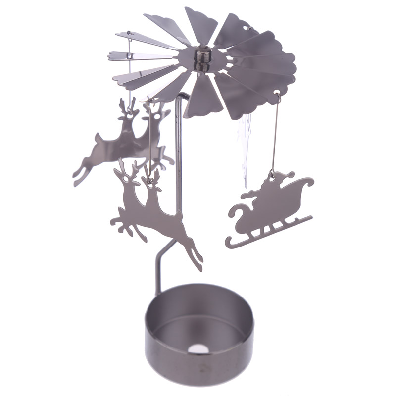 Cuando la vela de té se enciende en el soporte, por el calor de la vela gira el carrusel de la parte superior y refleja la forma del colgante en el ambiente.