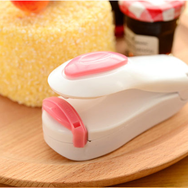 Mini máquina de termosellado que utiliza el calor para sellar bolsas de plástico.