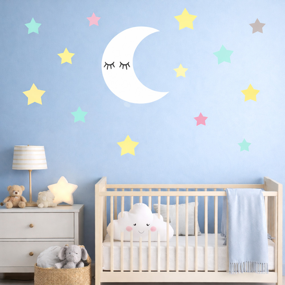 30 estrellas de diferentes tamaños (2,0x2,9cm y 7,87cm x 11,43cm) y 4 colores (rosa, amarillo, mint y gris plateado)